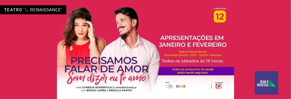 A comédia romântica ficará em cartaz do dia 8 de janeiro ao dia 26 de fevereiro aos sábados às 19h. Compra de ingressos pelo site: http://www.teatrorenaissance.com.br/.