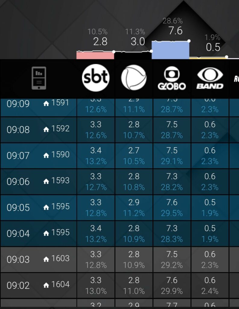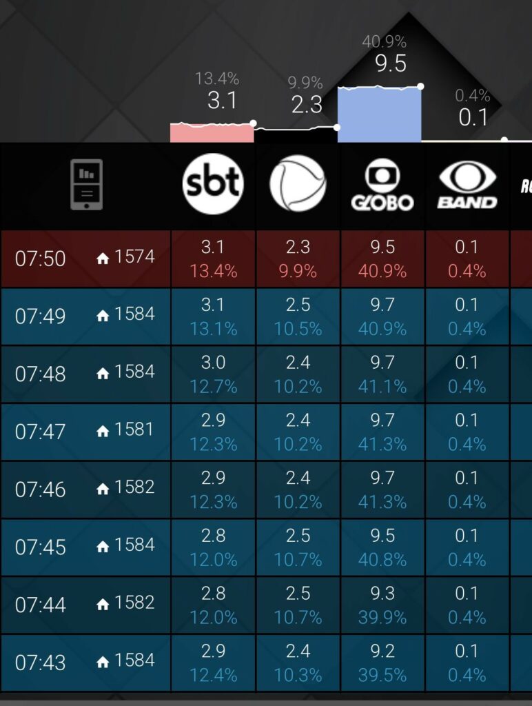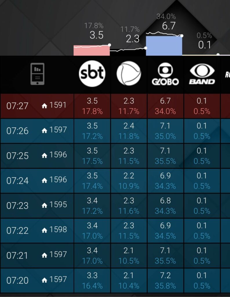 Nos dados obtidos e analisados pela Coluna é possível notar que o programa comandado pelo Marcão Do Povo possui uma média de 2.8 a 3.5 pontos, enquanto a Record TV no mesmo horário não ultrapassa os 2.9 pontos. Os dados são uma amostra correspondente ao período de 1° a 9 de junho.