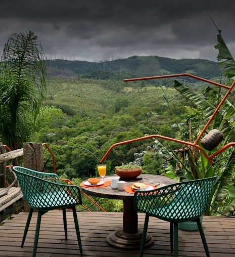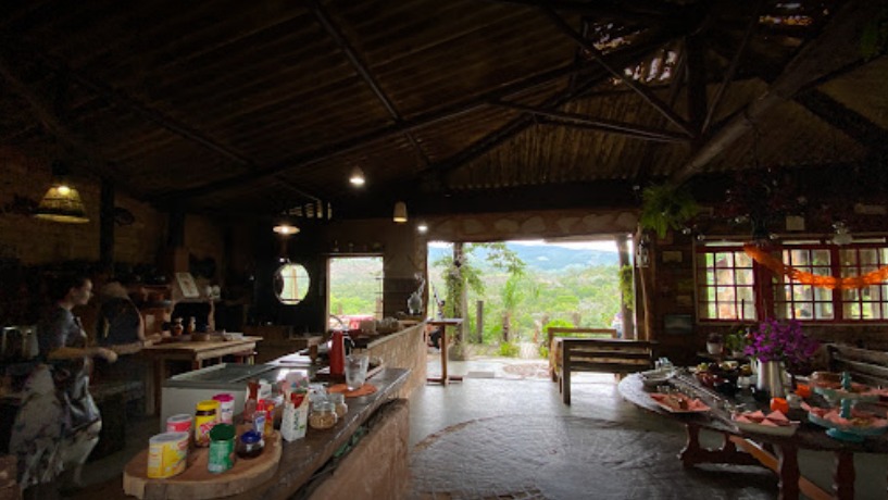 O local é de tirar o fôlego de tanta beleza natural, o que proporciona contato com a natureza em um momento banhado a muita comida boa. “Aqui estamos no meio do mato. É um lugar bonito, tem um visual e muita bioconstrução, muita coisa feita por nós. Temos um respeito muito grande pela natureza, a nossa construção foi feita com coisas que o próprio sítio ofereceu”.