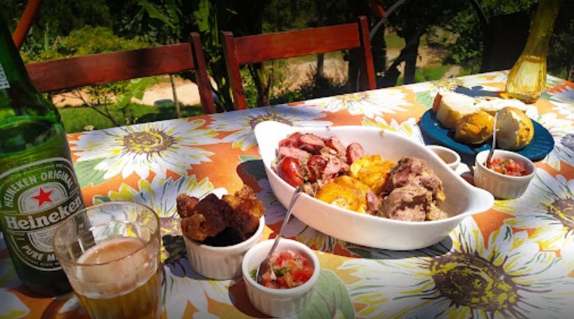 Em meio a natureza e sempre fazendo questão de preservá-la, João montou um espaço com fogão a lenha para que pudessem servir uma comida artesanal e simples, juntando o lado caipira e italiano da família. “Temos uma culinária bem simples e raiz, como os antigos faziam, com porco na lata, linguiça defumada, torresmo, frango”.