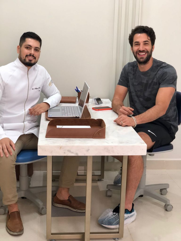 Rafael Queiroz, o Rael da novela Dona do Pedaço, da Rede Globo de Televisão, para estar com o visual e a saúde bucal em dia, o ator visitou os cirurgiões-dentistas Dr. Kesley Benevenuto e Dr. Felipe Costa, na cidade de Campinas, no estado de São Paulo.