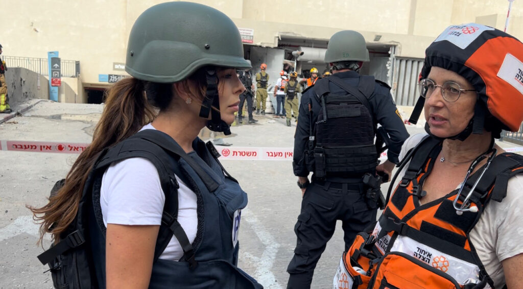 Erika é correspondente da RedeTV! em Londres e conta que foi surpreendida pelos ataques realizados pelo grupo extremista Hamas em sua viagem de turismo. “Vim para Israel com uma caravana para conhecer e fazer algumas matérias culturais sobre a cidade e, de repente, aconteceu o conflito entre Palestina e Israel, nos pegando de surpresa”, relata.