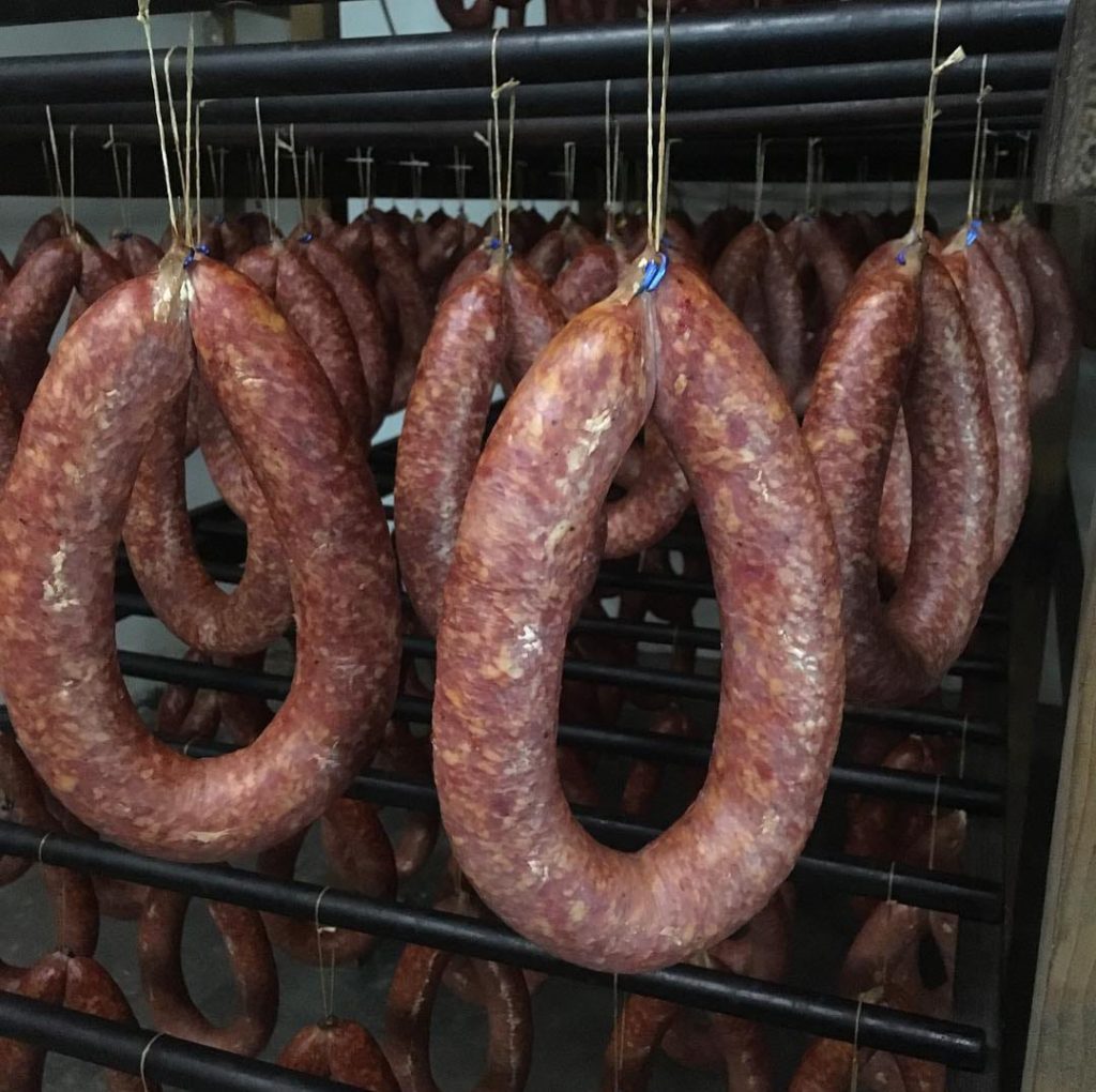 “Cada produtor tem uma identificação, que são os temperos. Eles usam a linguiça e dão o toque especial. A maioria é feita de forma artesanal, defumada na fumaça, assim como era feito antigamente e esse processo pode levar de dois a sete dias até ficar pronta”, contou.