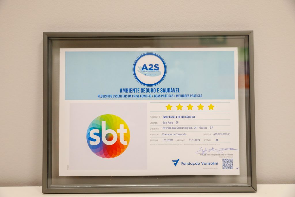 Oferecer um ambiente de trabalho com segurança sanitária e salubridade aos colaboradores e frequentadores do SBT sempre foi um ponto de atenção e cuidado da emissora, principalmente no contexto da pandemia de coronavírus. Tal esforço teve o seu reconhecimento atestado pela Fundação Vanzolini, por meio do selo A2S (Ambiente Seguro e Saudável), com cinco estrelas destacadas.