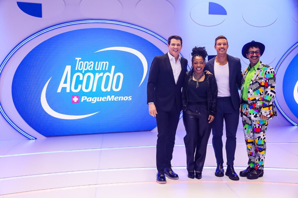 O SBT em parceria com a rede de farmácias Pague Menos, a Fremantle e a agência Lew’Lara\TBWA promoveram, na última quarta-feira (20), a coletiva de imprensa do lançamento do programa “Topa um Acordo Pague Menos”. O evento ocorreu nos Estúdios Corifeu, em São Paulo, no cenário temático da atração, e contou com as presenças dos apresentadores Celso Portiolli, Gabriel Cartolano, Juliana e o personagem Cilada.