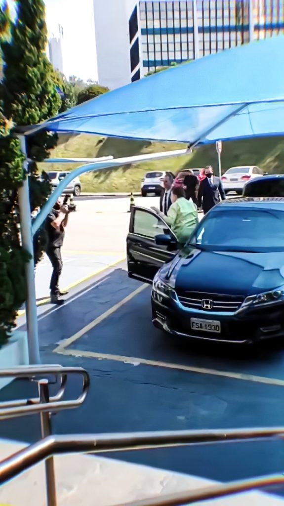 A apresentadora e empresária postou em seu perfil do Instagram filmagens do seu pai chegando ao SBT e cumprimentando fotógrafos, seguranças e equipe.
