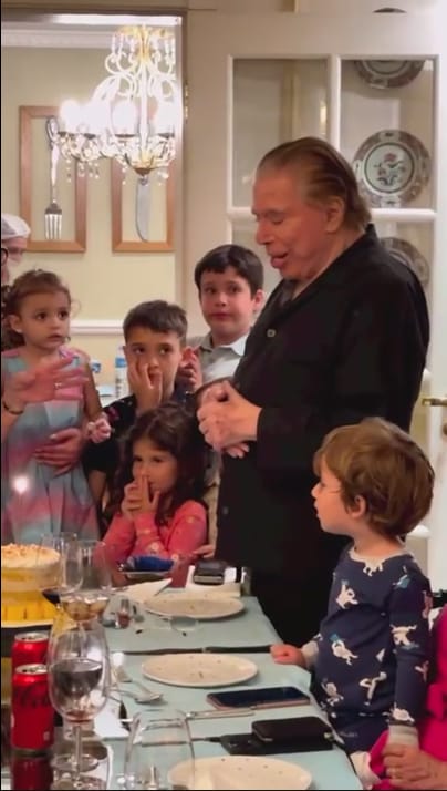 No vídeo compartilhado por Thiago, toda a família aparece cantando parabéns animadamente. Ao lado de Silvio, está sua esposa, Íris Abravanel, com quem é casado desde de 1981.