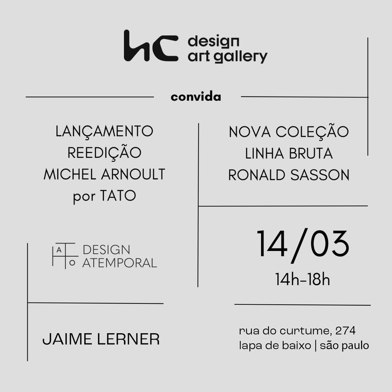 Além da reedição de Arnoult, a TATO também apresenta a coleção BRUTA de Ronald Sasson. As peças desta coleção são de traços simples que beneficiam os encaixes e sobreposição das partes, tendo a madeira como protagonista, bem como as arestas simples e perceptíveis. Sasson tem a funcionalidade como marca do seu traço e sua formação em artes plásticas lhe rendeu uma visão de design muito particular. Desde os anos 2000, trabalha com design de mobiliário, priorizando a função e constantemente pesquisa materiais e técnicas viáveis ao desenvolvimento de móveis e objetos.