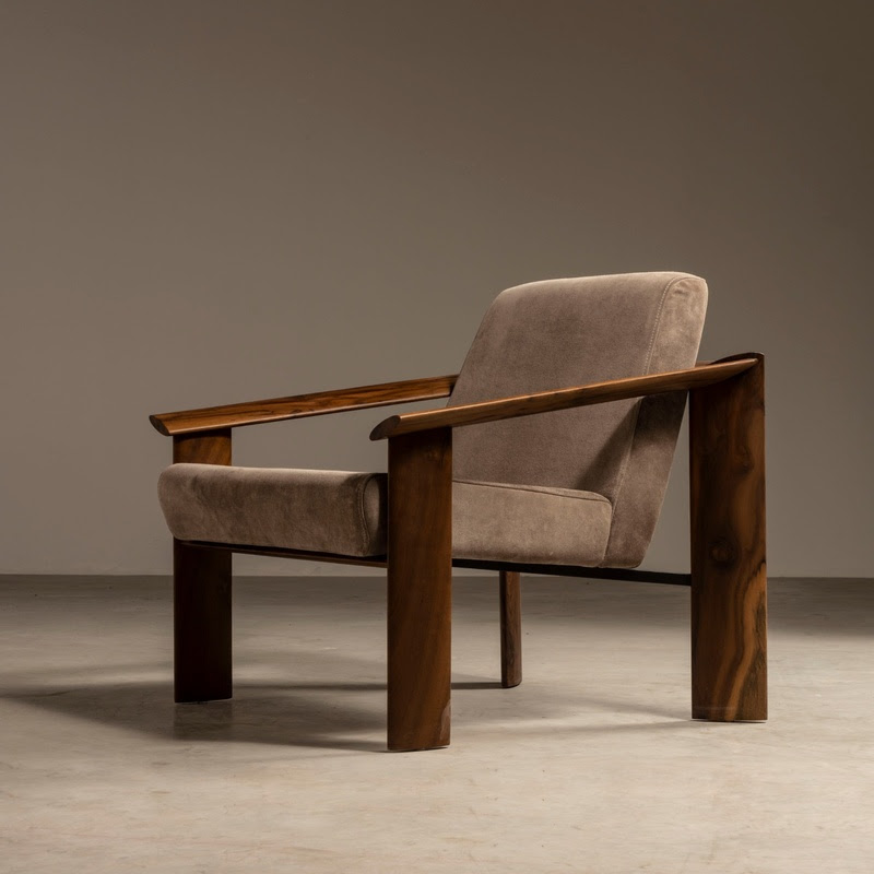 Chaise, poltrona, cadeira e banco em aço carbono, fibra de vidro e madeira. Representação em São Paulo por Herança Cultural.
