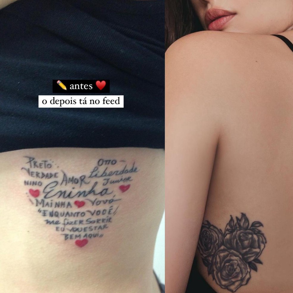 Campeã do BBB 21, Juliette Freire mostrou recentemente na sua conta do Instagram uma cobertura que fez. Ela tinha, nas costelas, uma tatuagem em homenagem a membros da sua família com sua letra, mas decidiu cobrir com três rosas que formam um coração porque a original se desgastou. Hctor Valentim explica que para fazer uma cobertura é necessário que a arte substituta seja maior do que a anterior. “Precisa ser bem maior, umas três vezes, e a nova fica mais escura. Dá pra cobrir até as coloridas”, ensina.