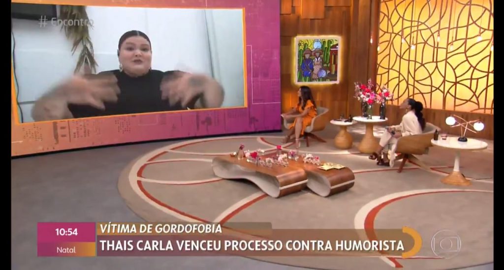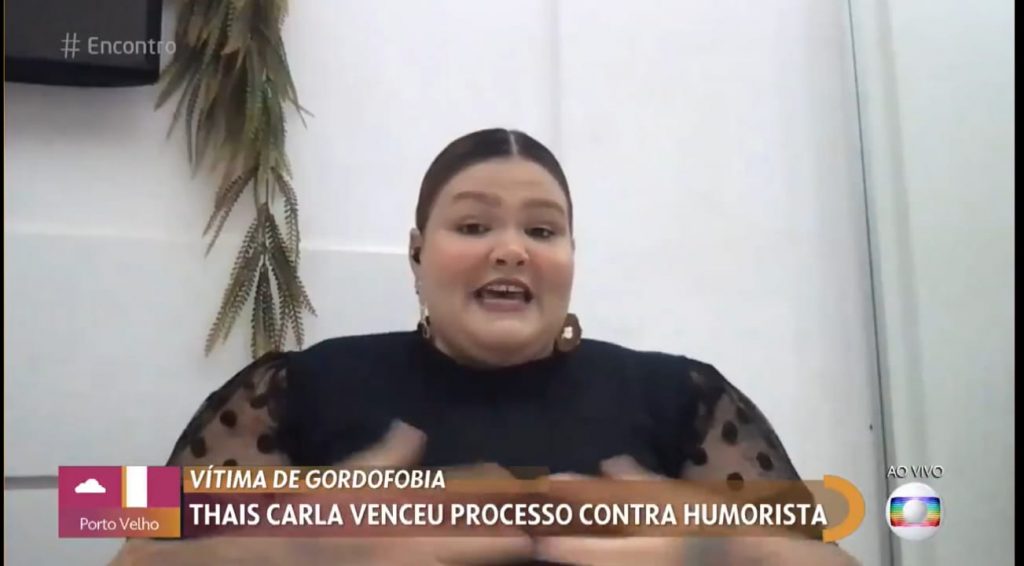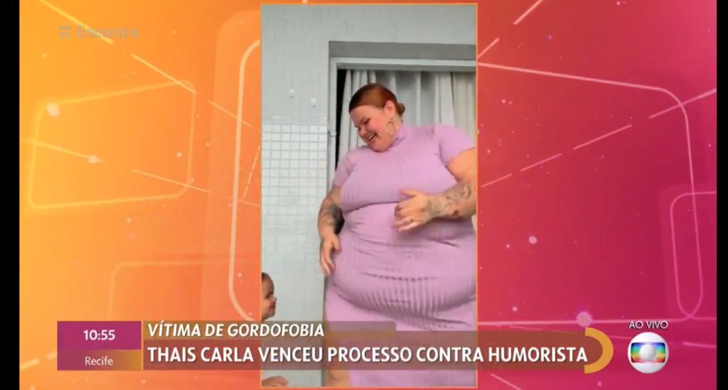 O humorista, que faz parte do staff de comediantes do The Noite, exibido pelo SBT, terá de pagar para Thais em 5 mil reais de indenização. Em conversa com a apresentadora Fátima Bernardes, ela fez um discurso de empoderamento: “Não importa como elas sejam, elas podem ser felizes do jeito que elas são! A sociedade tem que entender que basta você se encontrar e ser feliz”.