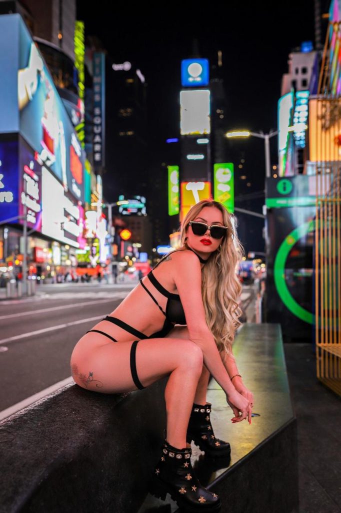Entre um clique e outro a modelo e empresária Thalita Zampirolli roubava a atenção de quem passava pela Times Square, famoso cartão postal de Nova Iorque, nos Estados Unidos. A muda foi clicada em um ensaio sensual pelas lentes do conceituado fotógrafo Mayron Brum. O ensaio elevou a temperatura do local, que já foi palco do filme Homem-Aranha, e até mesmo a polícia precisou ajudar.
