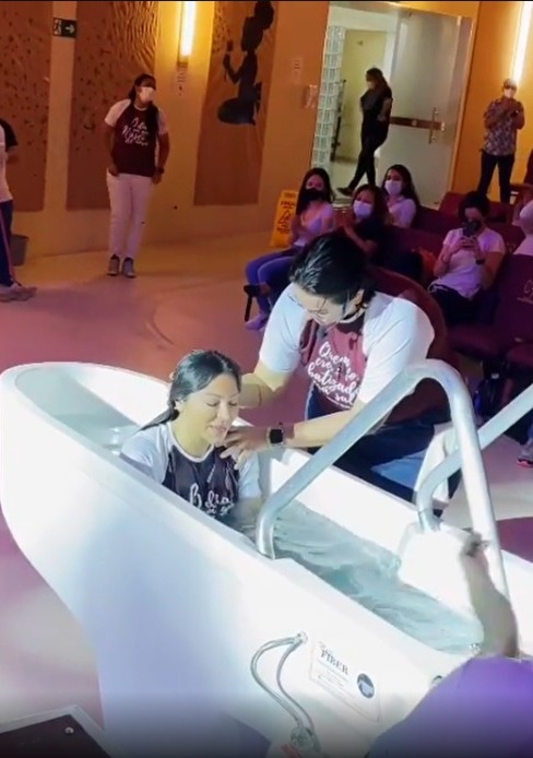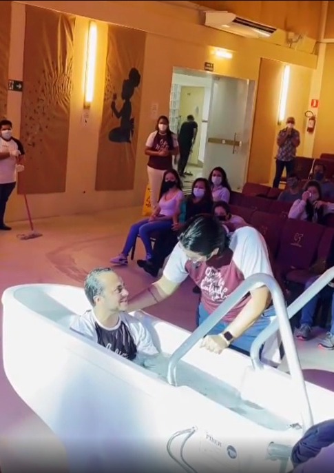 “Um momento único em nossas vidas. O renascimento, a nossa fé, a nossa vida para Jesus, nosso único salvador. Batismo significa que o corpo de CRISTO vive em mim. Deus é amor, é cura, é libertação! Ter a sua natureza regenerada, ou seja, nascer de novo!”