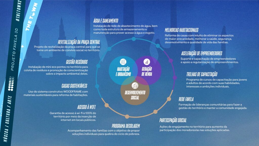 Edu Lyra, fundador e presidente da ONG Gerando Falcões, ressalta a importância da dignidade na vida dos moradores das favelas. O projeto Favela 3D busca proporcionar acesso a infraestrutura básica, como água encanada, saneamento, iluminação, Wi-Fi, moradias dignas, creches, escolas, capacitação, emprego e renda. A parceria com o The Town permite levar essa iniciativa inédita para a Favela do Haiti e provar que é possível vencer a pobreza e construir uma realidade de dignidade nas favelas.
