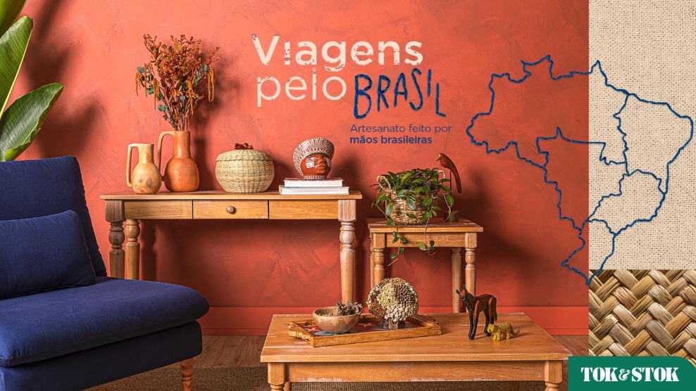 Com mais de 400 produtos assinados por artesãos das cinco regiões do país, a Tok&Stok lança a coleção Viagens pelo Brasil. A nova coleção convida o consumidor a embarcar em uma viagem em busca de um dos maiores patrimônios culturais brasileiro: o artesanato raiz. Existem inúmeras expressões autênticas que marcam toda a multiplicidade criativa, e a campanha visa valorizar e estimular essa produção, propagando os saberes e histórias que fazem dela uma manifestação única do país.