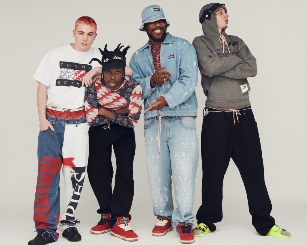 A Tommy Hilfiger anunciou recentemente sua mais nova colaboração com a marca de streetwear de luxo Aries, sediada em Londres. A coleção Tommy x Aries é inspirada nos arquivos da Tommy Jeans e atualizada pela lente da Aries, que adicionou um twist poderoso com foco em proporções exageradas e técnicas artesanais.