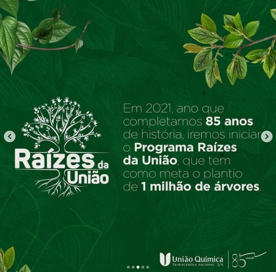 De acordo com a assessoria de imprensa da empresa, as iniciativas sustentáveis da União Química terão três fases, de curto, médio e longo prazo. O primeiro passo será o lançamento do Programa Raízes da União, além do plantio das milhares de mudas de árvores em diversas regiões do país. O objetivo é ampliar as iniciativas de impacto ambiental e social da organização, inclusive com ações educativas nas comunidades do entorno das fábricas.
