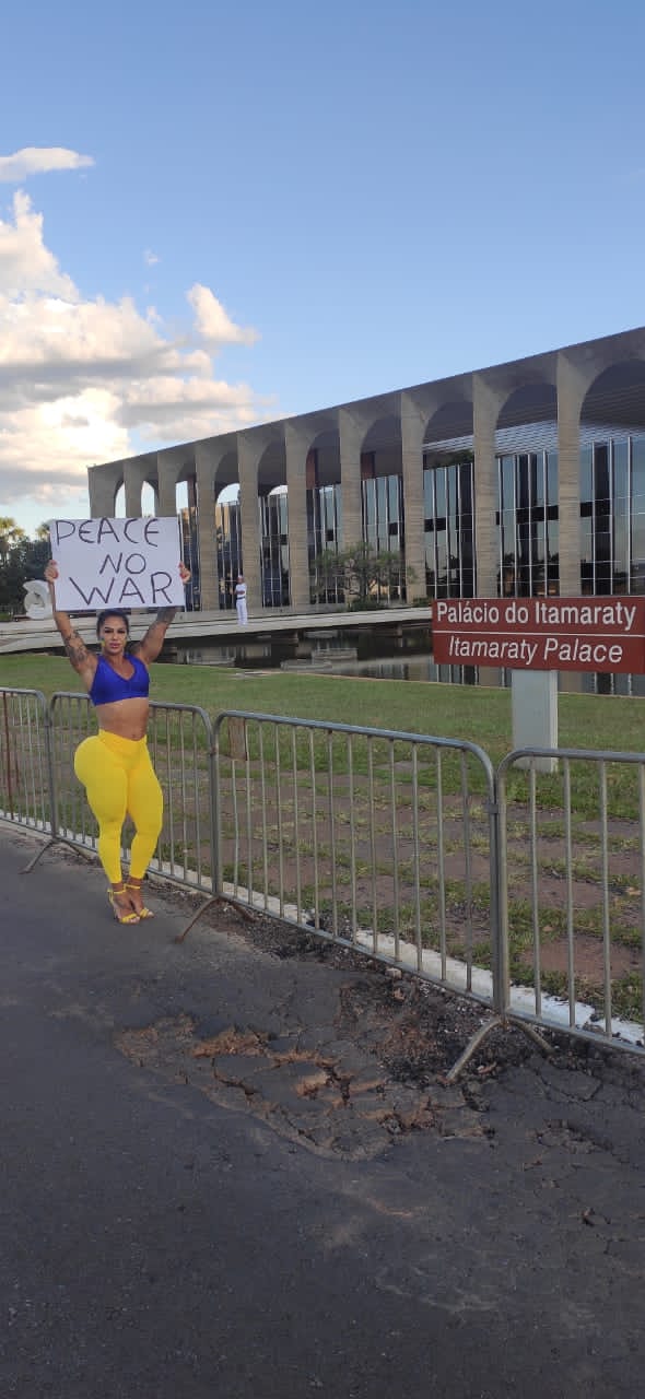 ” A Rússia está colocando seus interesses acima do amor à vida, em que famílias pagam o preço de algo que não merecem. Os interesses pessoais se sobressaem diante dos interesses coletivos”, pontua a modelo que também protestou em frente ao Palácio do Itamaraty.