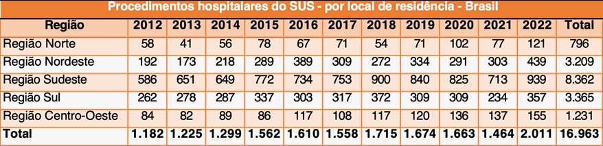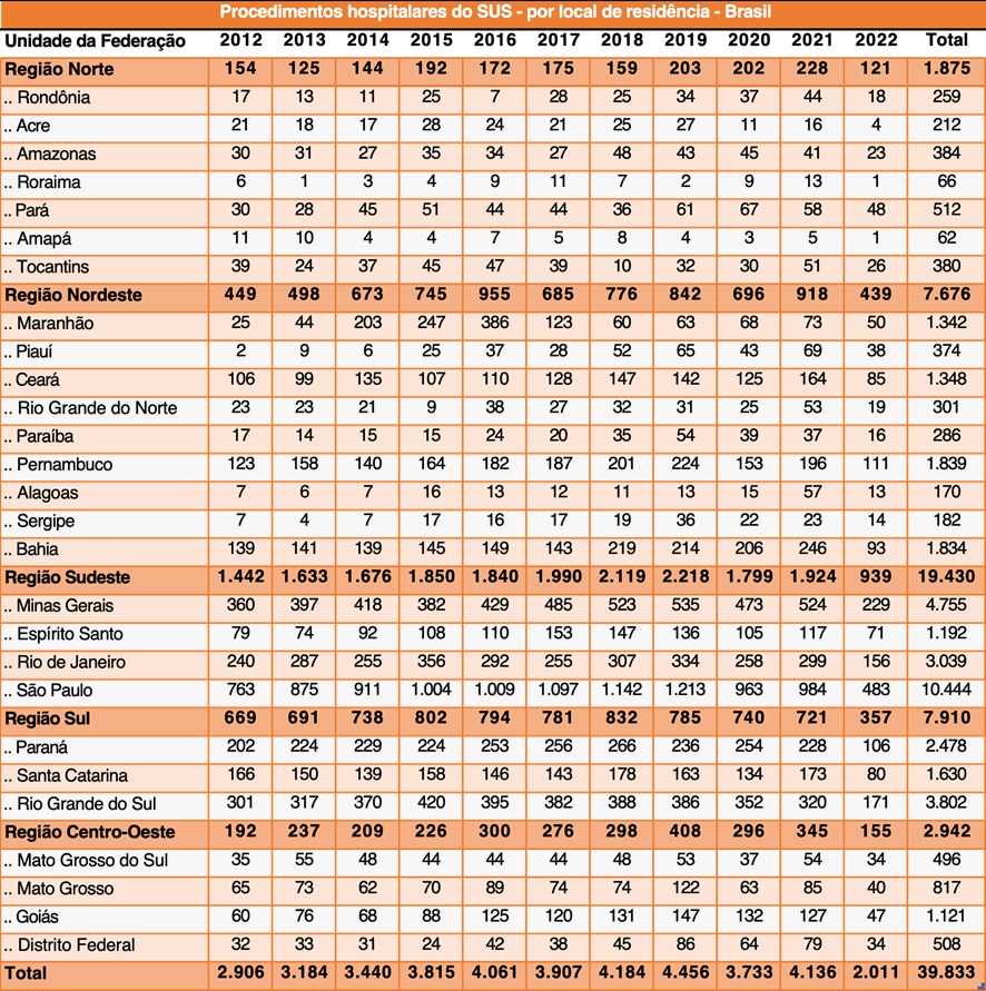 O cálculo aponta que, entre janeiro de 2012 e maio de 2022, quase 40 mil pessoas foram submetidas a procedimentos para tratamento da doença, com milhares de casos com desfecho fatal. Os números se referem apenas aos serviços prestados pelos hospitais do Sistema Único de Saúde (SUS). Diante disso, estima-se que o número de casos seja maior em virtude de atendimentos realizados por planos de saúde e de modo particular.