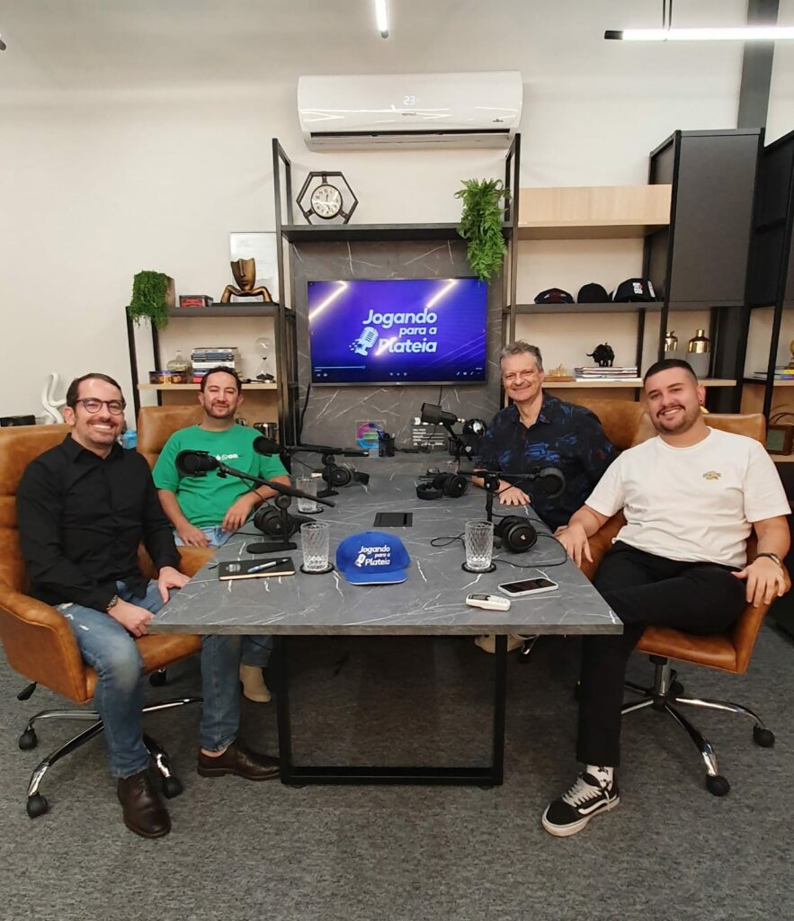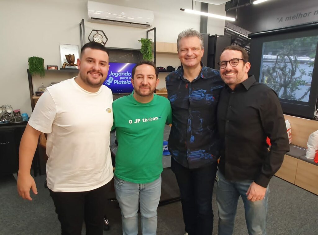 Para falar sobre o tema negócios e WhatsApp, Jimmy e Fábio Ferrari, os apresentadores do Podcast “Jogando para a Plateia”, receberam o jornalista e especialista em comunicação via WhatsApp, João Paulo Borges, conhecido como “JP do Whats”, em um dos episódios mais recentes do podcast. O episódio contou ainda com a participação especial do jornalista convidado Davi Paes e Lima.