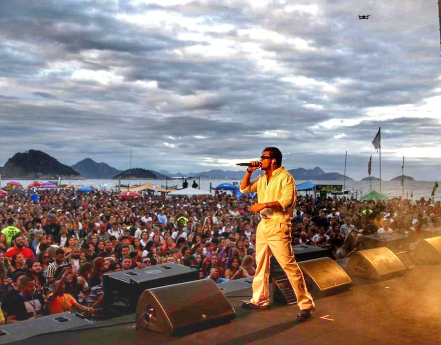 O tempo nublado na manhã de domingo não espantou a multidão que foi à Praia de Copacabana para acompanhar o segundo dia de Tim Music Rio, com show de Xamã, convidando Luisa Sonza e Majur. A areia e a orla foram tomadas pelo grande público, que somou por volta de 50 mil pessoas. No palco, localizado na altura do posto 4, em frente à rua Constante Ramos, o rapper cantou sucessos como “Malvadão” e “Monalisa”.