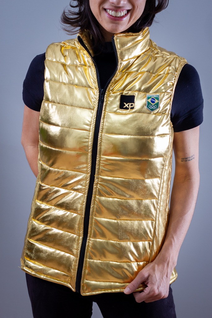 O tradicional colete da XP também vai ser repaginado para os Jogos Olímpicos e ganhará uma versão dourada para comemorar as conquistas do Brasil. Ele vai ser usado pela Glenda em Tóquio. A empresa também planeja ações com assessores e de engajamento com seguidores em suas redes sociais, que envolverá a distribuição desses coletes e de outros brindes.