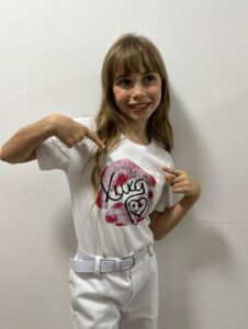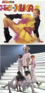 As crianças participaram da sessão de fotos com a rainha e em uma das imagens, replicaram a famosa pose de Xuxa na capa do disco ‘Xegundo Xou da Xuxa’, parte da série de gravações dedicados ao programa Xou da Xuxa.