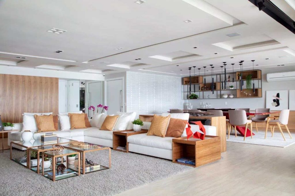 Para salas pequenas, a dica é usar tons mais claros para aumentar o ambiente. Já para as salas maiores, os tons mais escuros podem trazer mais modernidade para o espaço.