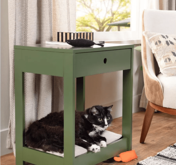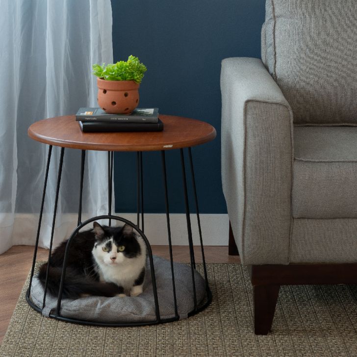 Você pode comprar uma caminha em um Petshop, existem uma infinidade de opções, ou até mesmo adaptar um móvel. Por exemplo, você pode reformar uma mesinha de cabeceira antiga, tirando as gavetas e colocar um colchãozinho para ele dormir. Uma ideia interessante é deixar na sala, do lado sofá, servindo como mesa de apoio também.