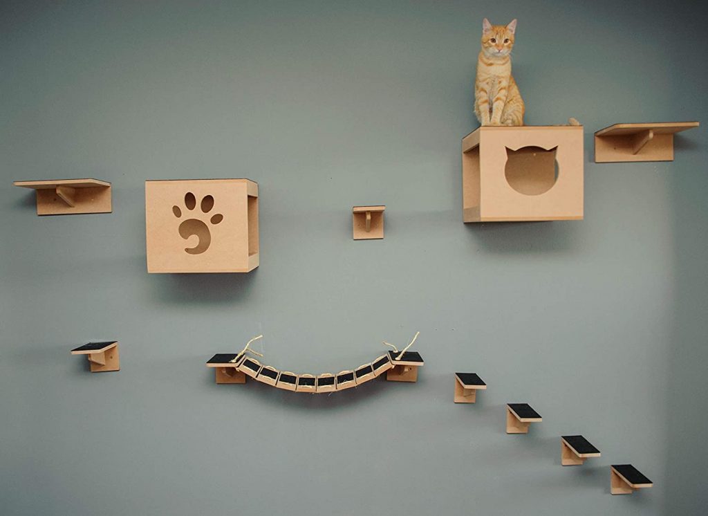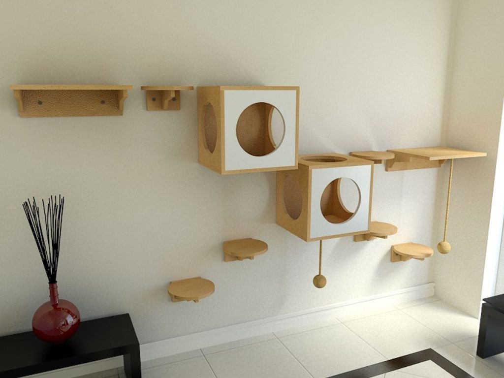 Para quem gosta de gatinhos, invista em prateleiras para eles brincarem com alguns obstáculos, mas sem usar objetos de decoração frágeis que possam causar acidentes