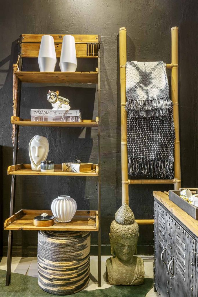 Ressaltasse aqui também o mobiliário. As estantes e a mesa, desenhadas por eles especialmente para a WeissenHauss e que também são comercializadas no local.