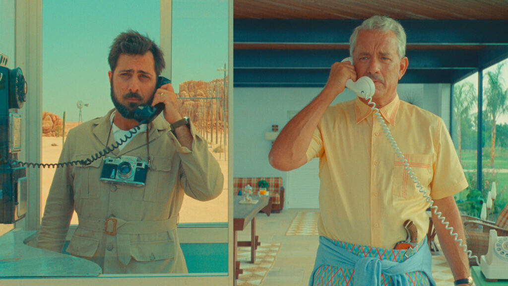 Wes Anderson é conhecido por sempre destacar o maximalismo em seus filmes, explorando os tons mais quentes, os cenários, tudo encaixadinho em seu lugar, prezando pela harmonia e beleza do espaço visto pelos espectadores. Anderson que além de assinar a direção também escreveu o roteiro ao lado de Roman Coppola tem um controle perfeito para enquadrar os personagens dentro das cenas, focando nos detalhes que facilmente poderiam ser esquecidos.