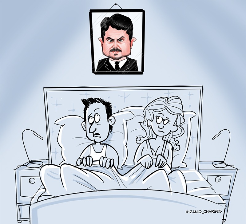 Quem aluga uma mansão de praia na ilha dos Frades em Vitória (ES) se surpreende com o quadro inusitado na suíte master. É a foto moldurada do dono da casa na cabeceira da cama: Trata-se do senador Marcos do Val, engravatado, o proprietário do imóvel.