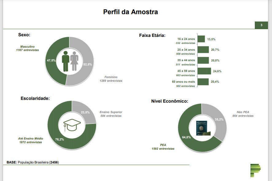 A Paraná ouviu 2.456 brasileiros por telefone, em 202 cidades dos 26 Estados e DF, de 5 a 9 de março. A margem de erro é de 2 pontos percentuais.