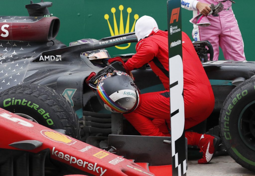 Se não bastasse o feito e as palavras, ao final, tivemos um gesto. O gesto é sempre o maior dos exemplos. O gesto é o caráter em forma de ação. E o gesto veio de outro multicampeão. Vettel, que conquistou um merecido terceiro lugar após uma melancólica temporada na Ferrari (de onde se despede), vai ao atual campeão que ainda estava emocionado no cockpit, se abaixa e o parabeniza de maneira fraternal. O respeito entre os campeões também inspira.