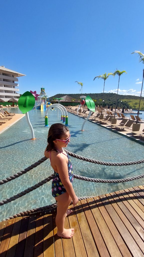 Falando um pouquinho mais sobre as jacuzzis, elas são quentinhas e a temperatura média da água é de 30 graus. A playlist é muito bem selecionada, é só ficar ali curtindo com sua bebida favorita. No segundo dia, na parte da tarde, nossa pequena foi para a Jota City, uma espécie de metrópole infantil do futuro. Inspirada nos parques temáticos mundiais a proposta é bem interessante cheia de oficinas interativas e educativas. Enquanto Lara aproveitava com os Taualegres (nome dos recreadores do Resort), eu e Denise fomos curtir um pouco do SPA, muito bem equipado e com diversas terapias.