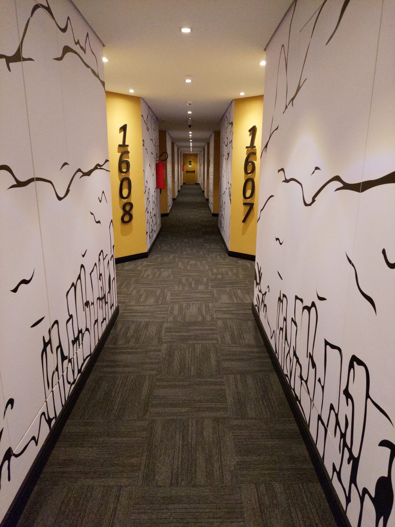 Nos últimos dias, tive o privilégio de ver tudo isso de perto. Minha esposa estava de férias e decidimos dar uma escapadinha de dois dias. Moramos em Brasília e o trajeto até o Resort em Alexânia não dura mais que 1 hora. Logo na portaria, às margens da 060, nossas temperaturas foram aferidas e um kit bem completo de higienização e proteção entregue. Já havíamos feito o web checkin então o processo na entrada foi ágil e seguro. Fomos com nossa filha de 06 anos e suas primeiras palavras ao ver o complexo aquático pelos vidros do lobby foram: “Estou chocada, papai!” Entrando no quarto as reações se multiplicaram, tudo muito decorado e sem nenhum exagero.