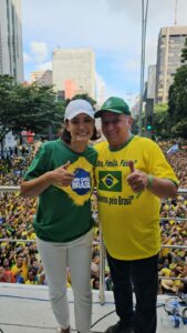 A vice-governadora do Distrito Federal, Celina Leão, foi uma das primeiras a chegar ao evento da avenida Paulista. Ainda na concentração, foi abraçar a ex-primeira-dama Michelle, que pouco depois abriria a sequência de discursos, com um pronunciamento cheio de conteúdo religioso.