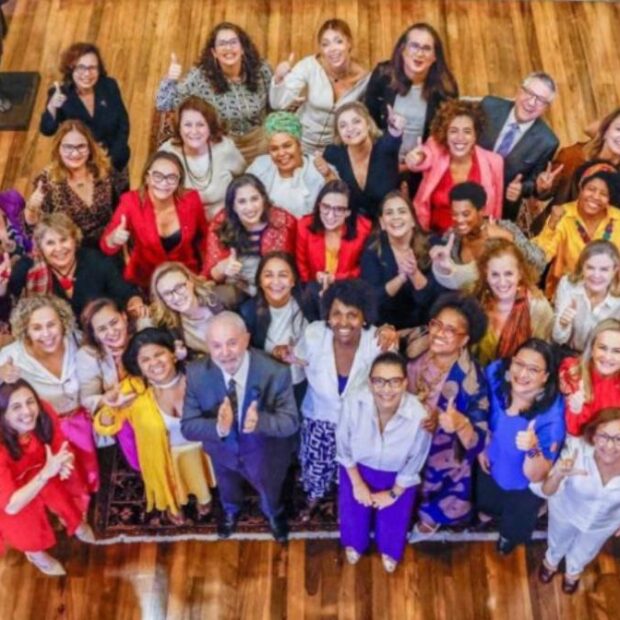 O jantar foi oferecido à bancada feminina alinhada ao Planalto. Na foto oficial, além das mulheres dos partidos governistas, só aparecem o presidente Lula e o ministro das Relações Institucionais, Alexandre Padilha.