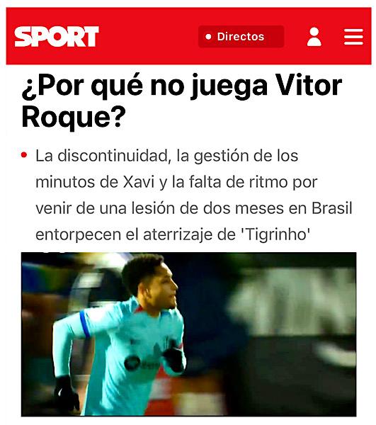 “Xavi queria proteger ‘Tigrinho’ (como eles chamam Vitor Roque), mas a sua gestão de minutos levou a uma descontinuidade e falta de ligação que prejudica o brasileiro, que acumulou 73 minutos em quatro atuações desde o início do mês”.