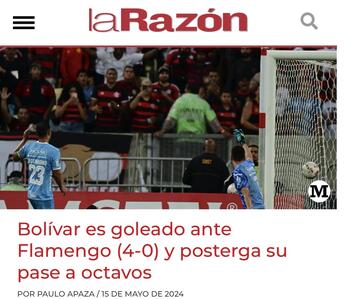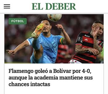 A reação da mídia boliviana foi unânime: “O Bolívar morreu com a ideia de futebol ofensivo e pagou caro pela ousadia de pressionar o Flamengo no lendário Maracanã”.
