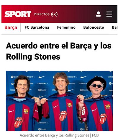Será que isso vai dar certo? O jornal catalão Sport anunciou nesta quinta-feira (19) que o Barcelona e os Rolling Stones assinaram acordo, antes do próximo clássico contra o Real Madrid, graças ao patrocínio do Spotify. Desta forma, o logotipo da lendária banda musical britânica aparecerá na frente da camisa do Barça, no dia 28 de outubro contra o time branco.