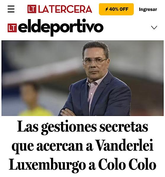 A matéria do jornal chileno que fala do interesse do Colo Colo em Luxemburgo trata o brasileiro com a maior reverência. O La Tercera diz que o clube chegou a pensar em nomes como Daniel Morón, Luis Zubeldía, Jorge Almirón, Gabriel Heinze, José Néstor Pekerman e Martín Palermo, mas fica evidente o entusiasmo quando se refere a Vanderlei Luxemburgo: