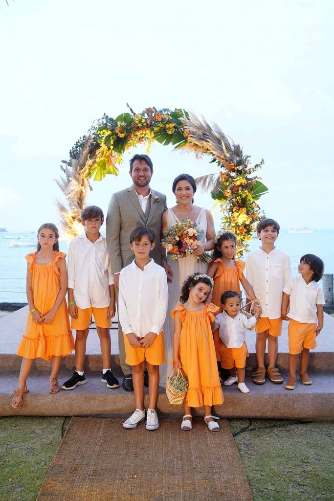 Depois do sim, a felicidade dos noivos ladeados dos pajens e daminhas. Foto: Celso Júnior