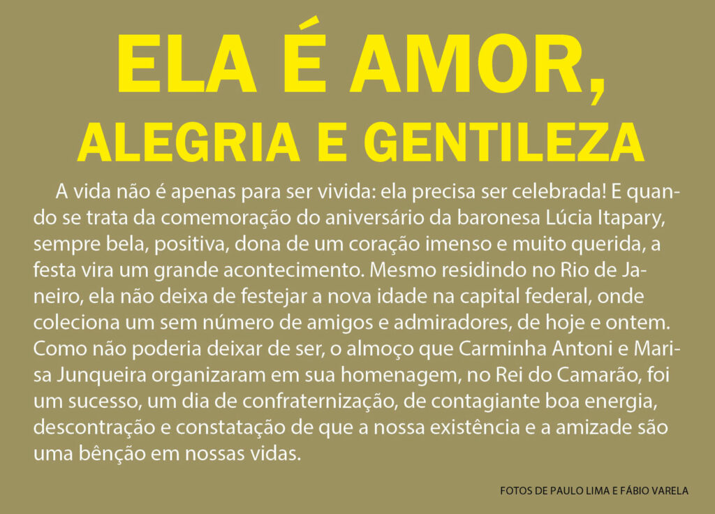 A bela baronesa, ladeada por Carminha Antoni e Marisa JunqueiraClotilde Chaparro e a jornalista Marlene GaleazziJacqueline Magalhães e Marleninha de SouzaVera Coimbra e Graci FrancoRita Márcia Machado, Maria Olímpia Gardino e Irene MaiaMarly Nogueira, Maria Ignez Nogueira e Maria Helena GomideNena Queiroz, Danielle Antoni e Eliane FreitasDésirée Diniz e Lúcia Itapary