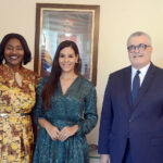 - Embaixatriz Julie e embaixador Jacques Michel Moudoute-Bell, ladeando a primeira-dama do DF, Mayara Noronha Rocha