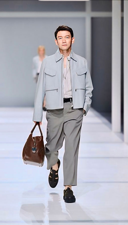 No magnífico Centro de Artes da Cisjordânia em Xangai, a Hermès criou um parque de diversões repleto de estética arquitetônica para trazer a coleção masculina de verão 2024 para um novo patamar. Areia amarela, cristal de gelo e verde, uma mistura de tons minerais ecoando uns aos outros, estão presentes no vestuário masculino com cortes inovadores, cores sutis e texturas, criando sobreposições inteligentes entrelaçadas entre si. O sol se desvanece, as luzes começam a brilhar, a noite é como uma fantasia e uma festa da moda masculina deixa a China em êxtase.