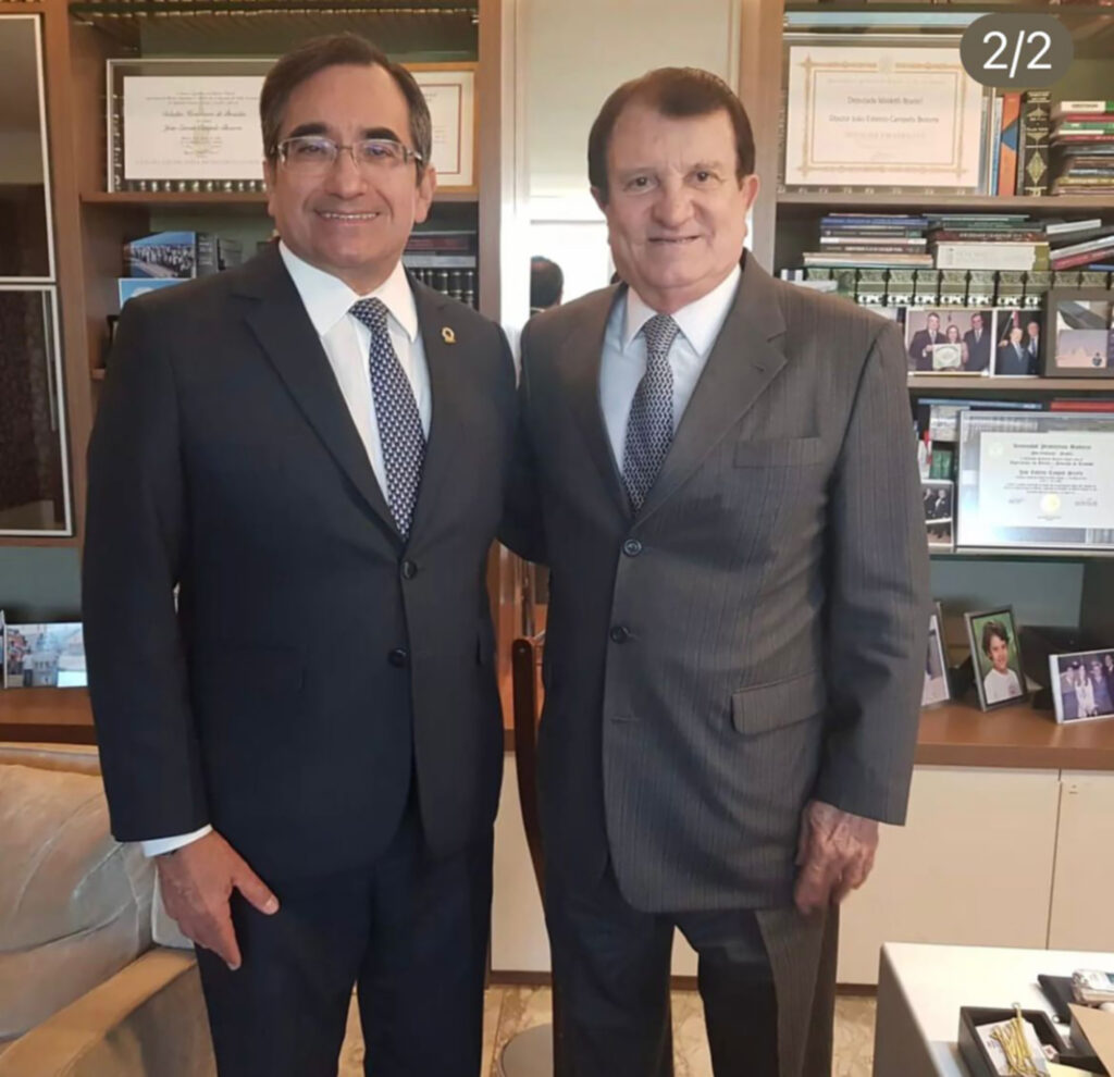 Em Brasília, visitando o Escritório Campelo Bezerra Advogados Associados, o Dr. Jardson Cruz, conselheiro diretor da ARCE – Agência Reguladora do Estado do Ceará, sendo recebido pelo advogado Estênio Campelo, sócio fundador da renomada empresa de advocacia.