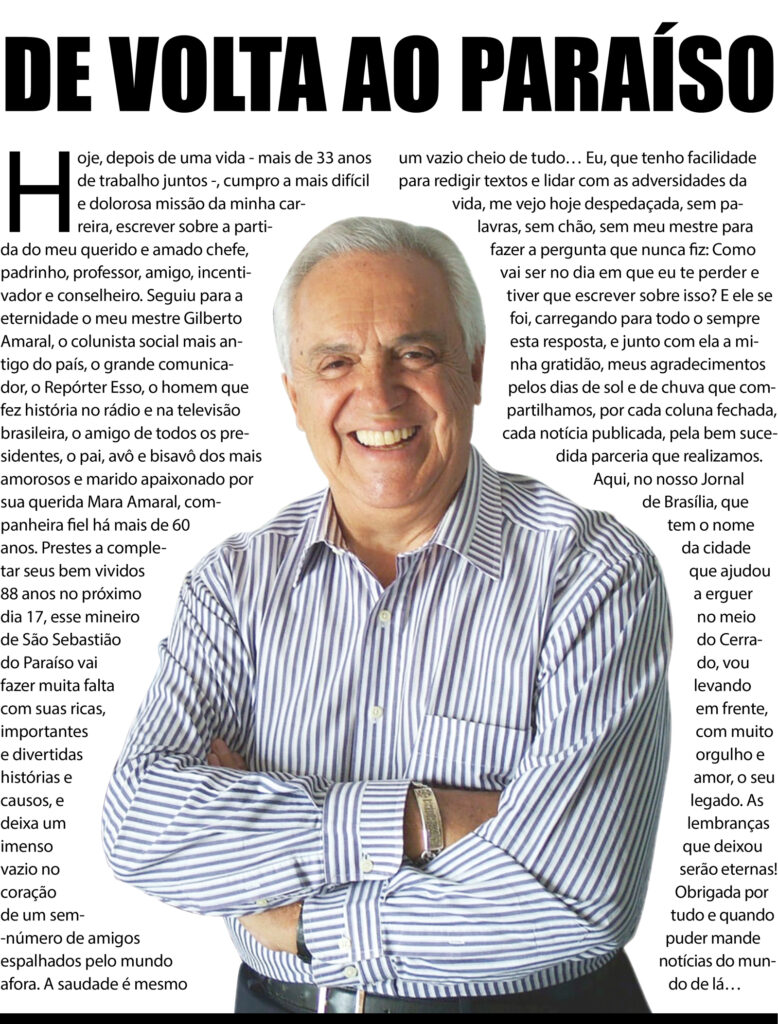 Hoje, depois de uma vida cumpro a mais difícil e dolorosa missão da minha carreira, escrever sobre a partida do meu querido e amado chefe