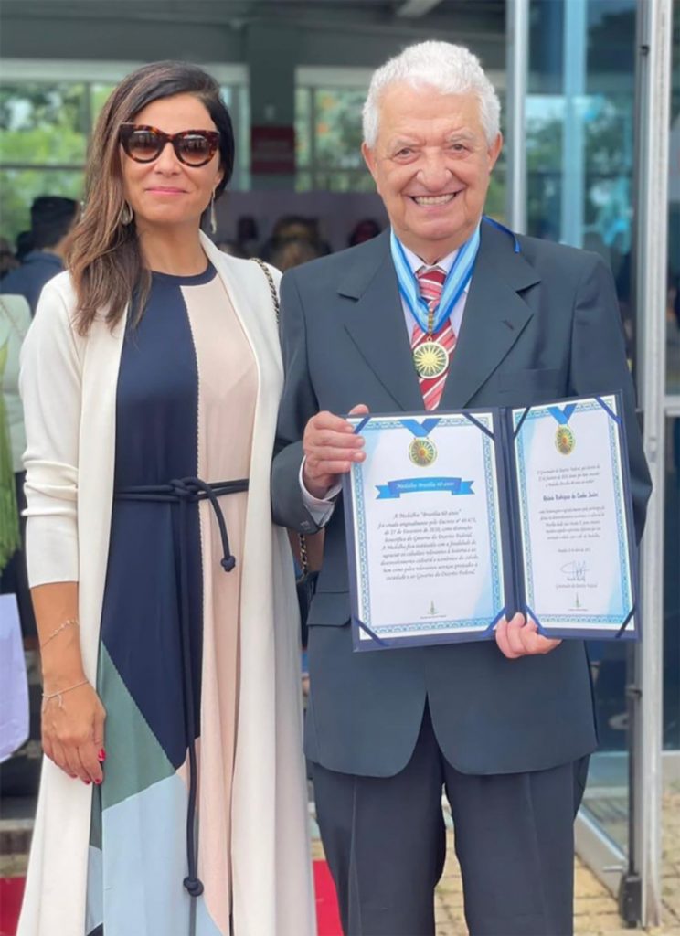 Importantes personalidades da cidade foram agraciadas com a medalha “Brasília 60 anos”, em respeito aos serviços prestados à capital federal. Entre elas, o amigo Afrânio Rodrigues da Cunha, que exibe a honraria ao lado da filha, Juliana Freitas (foto abaixo).